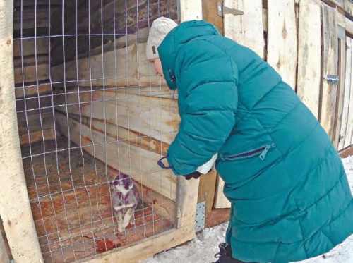 Пока те, кто решил уехать с новым другом, передавали сотруднику «Потока» необходимые данные, другие волонтеры взяли сено, которое было привезено неравнодушным качканарцем, и лежало на территории уже несколько дней, и пошли раскладывать его в вольеры замерзающих. Не остались псы и без горячей еды. Ее тоже пришлось привезти с собой.