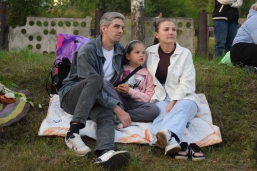 Многие пришли посмотреть кино целыми семьями, среди зрителей было много детей.