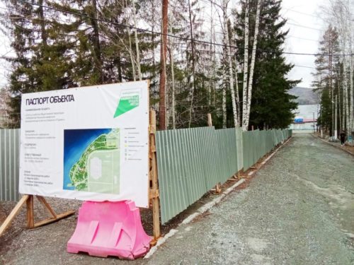В районе лодочной станции появилось ограждение с паспортом объекта — здесь будут делать благоустройство общественной территории под названием «Набережная Нижне-Качканарского водохранилища в районе стадиона «Горняк».