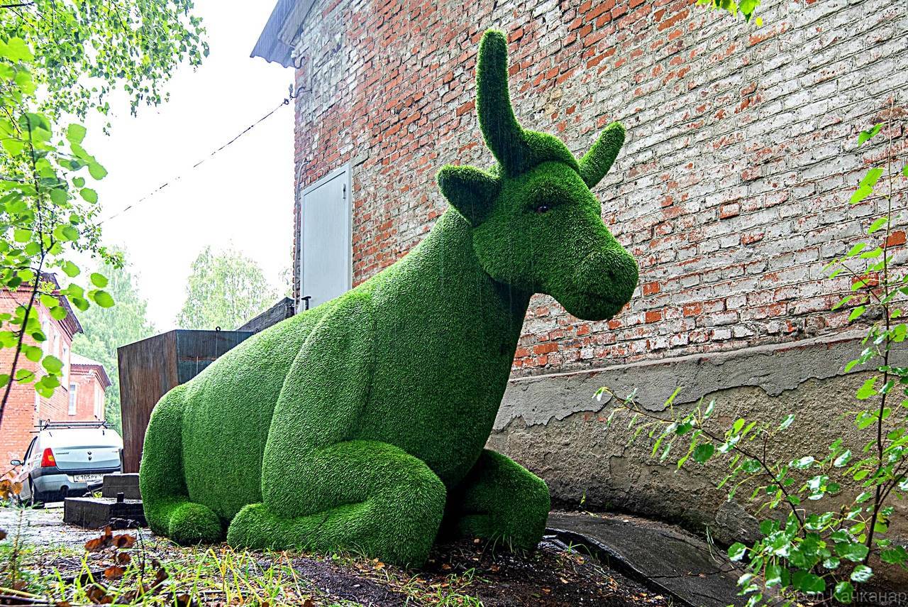 По информации пресс- службы мэрии, идея такого презента у мецената появилась после посещения такого же уютного и зеленого, как Качканар, городка в Швейцарии, где ежегодно отмечают праздник коров. Также она является священным животным у буддистов, и корова давно стала неофициальным символом Качканара, как и верблюд.