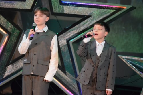От седьмой школы выступил дуэт Константина и Артема Ложеницыных с песней «А река течет» из фильма «Родные».