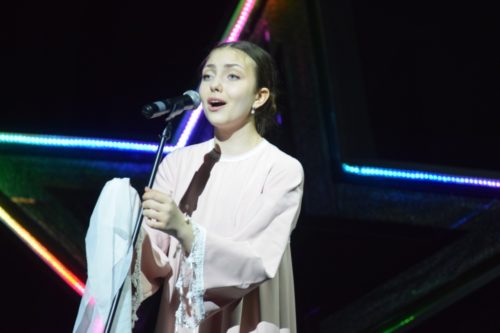 Два вокальных номера было от третьей школы. Александра Ослоповских спела песню «Тысяча дорог», а Лейла Бадертдинова — балладу о волшебном цветке.