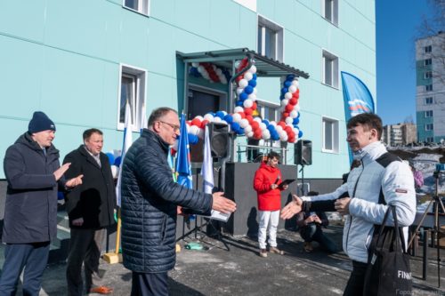 Торжественное вручение ключей состоялось во дворе построенного дома №28а. Документы и ключи новосёлы получали из рук главы КМО Андрея Ярославцева, управляющего Северным управленческим округом Александра Вервейна, а также представителей комбината, подрядчика и Законодательного собрания.