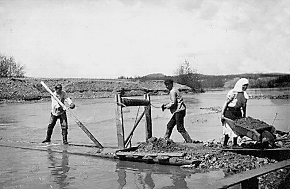Кроме драг, в воен­ные годы работало большое количество старательских артелей. Драги-то на зимний ремонт останавливали, а эти артели работали.