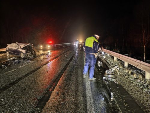 ДТП с участием двух автомобилей произошло ночью 19 апреля на 158 км автодороги «Екатеринбург — Нижний Тагил — Серов».