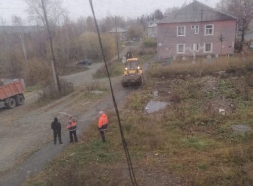И вот в субботу утром, 11 октября, в редакцию летит радостная новость: на место приехала техника и рабочие. Сначала они осмотрели площадку, потом, видимо, начали искать трубы, из которых бежит вода.