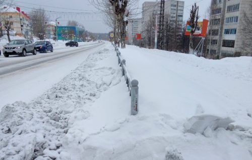 В некоторых местах улиц Свердлова, Энтузиастов и Октябрьской стали у́же не меньше, чем на одну полосу из-за снежных валов (фото). Хотя по ГОСТу снежные валы на проезжей части у придорожных ограждений не должны превышать высоты 20 см и должны быть убраны не более чем через четверо суток с окончания снегопада. А что ежедневно видим мы с начала года? Или про колеи на дорогах. Спуск от Энтузиастов до Свердлова это ещё то удовольствие. Местами колея не меньше десяти сантиметров глубиной. Полагаю, что при желании качканарцы могут опубликовать сотни фотографий неочищенных улиц Качканара. А может, и больше. О чем это говорит? Что городские улицы не чистятся как должно.