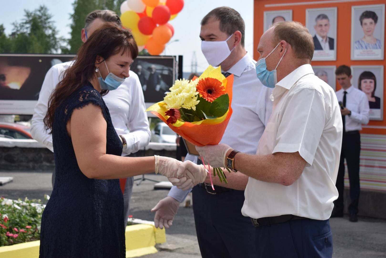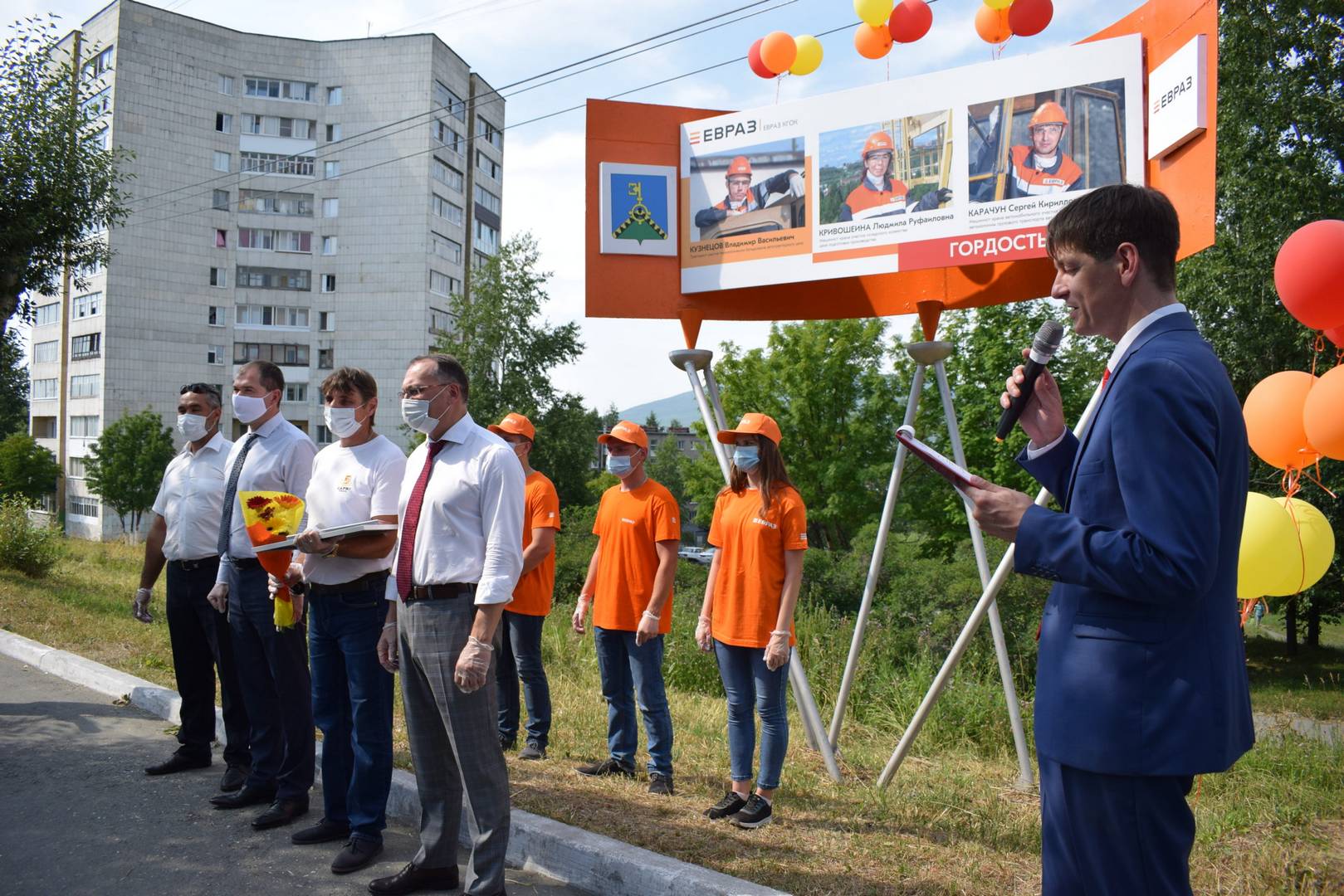В жаркий день, 15 июля, в преддверии Дня металлурга прошло торжественное открытие Доски почета. В связи с пандемией коронавирусной инфекции на праздничных мероприятиях все находились в масках и перчатках, с соблюдением дистанции. Виновникам торжества были вручены фотографии формата А4 и благодарственные письма.