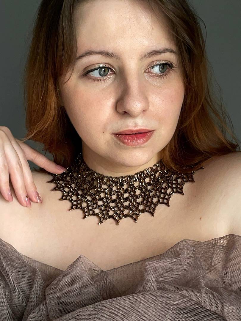 — И это всё: и декрет, и получение высшего образования, и обучение бисероплетению шли для меня параллельно. Эти годы для меня были сложными, но наполненными новыми знаниями, — говорит Замышляева. — Я увидела бисероплетение именно в современном формате, то есть это не были герданы, это не были простые колечки. Это были украшения из дорогого качественного японского бисера, который действительно блестел, изделия были нереально ровные, и это выглядело очень современно и трендово. Я влюбилась в эти изделия и стала изучать бисероплетение ещё активнее. Ещё через год я поняла, что хочу преподавать.