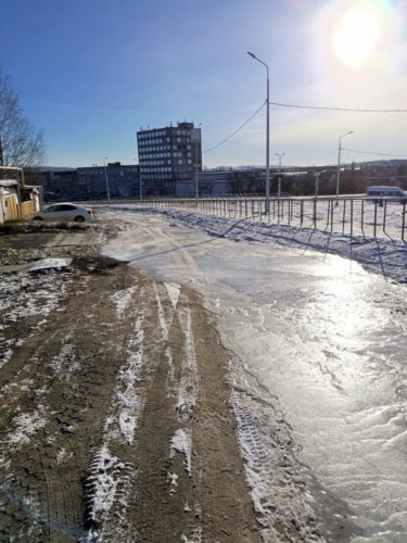 Ниже улицы Некрасова всё хорошо, и подъезды к домам выполнены, и выезды на дорогу есть, и выход на тротуар. А у нас почему так? Наверно проектировщики не увидели наши три дома.