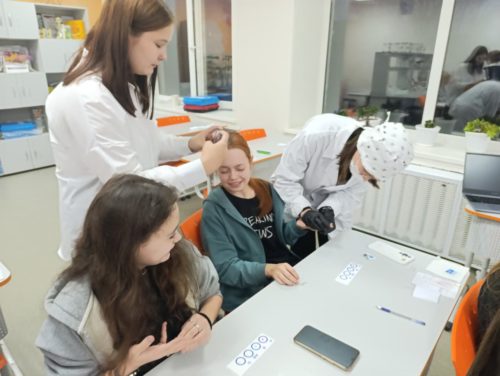 После успешно проведенной операции будущие медики отправились на следующий мастер-класс, на этот раз в кабинет химии. Здесь ученики пробовали себя в роли экспертов–криминалистов. Определяли и анализировали свои биометрические данные: от печатки пальцев и группу крови. Кровь бесстрашные школьники и их родители брали у себя самостоятельно.