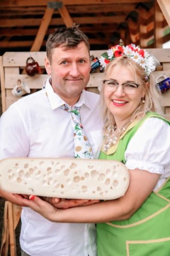 Илья и Галина (на фото), истинные мастера своего дела, с нескрываемым восторгом делились своей страстью, демонстрируя каждый этап — от завораживающего процесса сыроварения до бережного ухода за созревающими головками и таинственной атмосферы сырного хранилища. Глядя на их сияющие лица, невозможно было не почувствовать — это люди, по-настоящему живущие своим призванием, бесконечно счастливые! И вот настал долгожданный момент дегустации! Маасдам, этот популярный голландский сыр, словно брат-близнец швейцарского, покорил нас своим мягким вкусом. Созданный из коровьего молока, он проходит путь созревания не менее четырех недель. Удивительно, но Маасдам набирает свою прелесть быстрее своих голландских собратьев. Грюйер — свое благородное имя этот сыр унаследовал от живописного швейцарского городка Грюйер, что в кантоне Фрибур. Первые упоминания о нем теряются в глубине веков, уходя корнями аж в XII столетие.