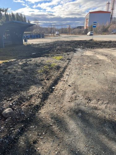Перед началом отопительного сезона эти трубы закопали, при этом перекопали асфальт у подъезда к дому и всю автобусную остановку. Теперь у людей нет возможности ждать автобус при плохой погоде на крытой остановке, так как там все перерыто и не выровнено.