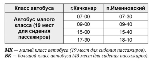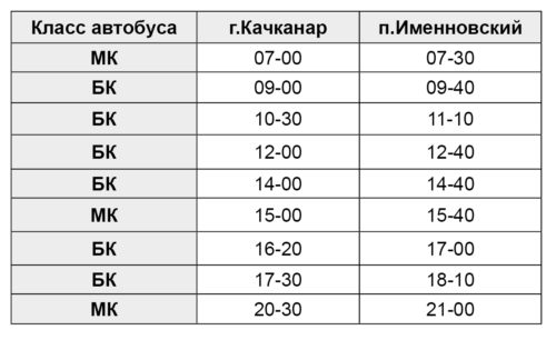 Расписание автобусов в посёлок Именновский