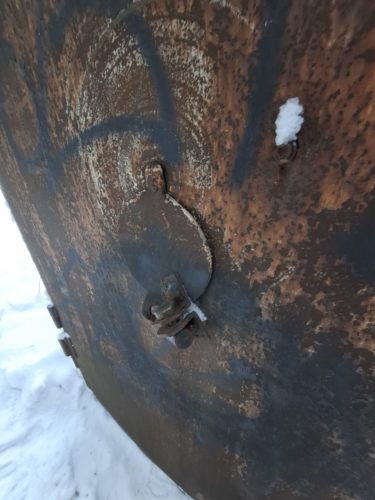 По его словам, изначально будка стояла в районе пруда и принадлежала матери и дочери, которые жили в доме №40. Они разводили собак. Нежеланный приплод держали в будке. Однажды будку подожгли вместе со всеми собаками. Тогда какой-то парень привёз эту будку за гаражи и посадил собаку на цепь. Года три назад это было. Он приезжает на машине, привозит сено в начале сезона. Иногда приезжает на машине с мешком собачьего корма. Дверь будки при снятии замка позволяет отодвигать заслонку и высыпать корм, не открывая саму дверь. Поэтому с собакой никто не гуляет. Гадит она под себя. Запах соответствующий.