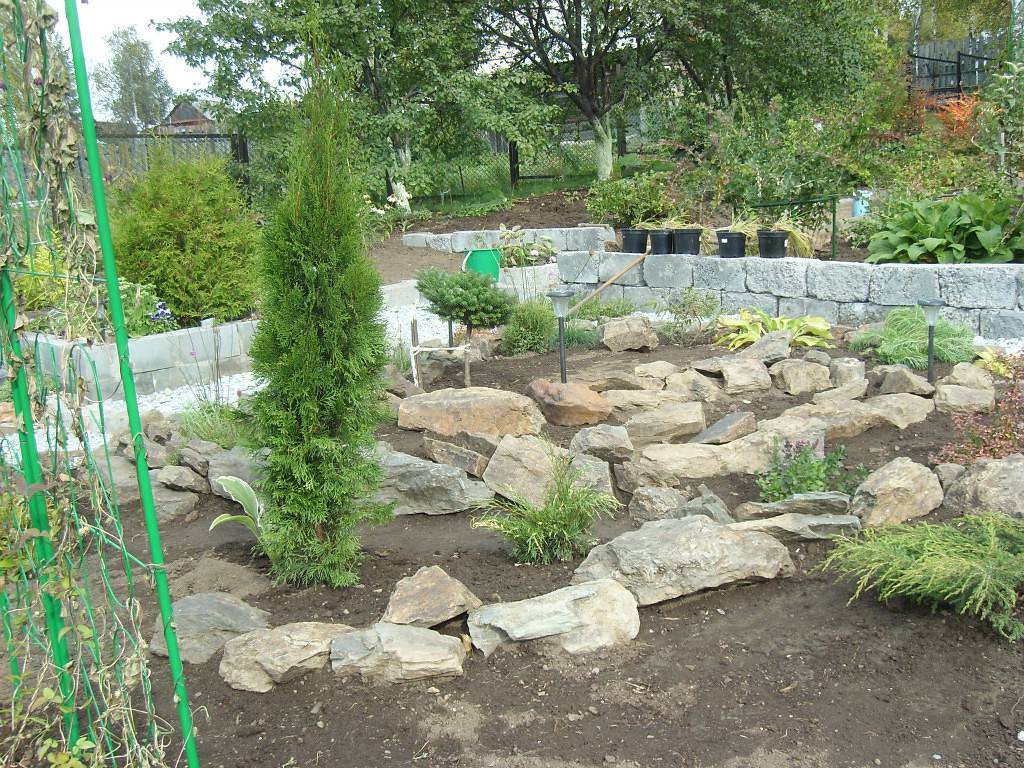 — Я всё время завидовала тем, у кого прямые участки. Журналы листала, а такого ландшафта горного, как у меня, не находила. Вот и ло­мала голову, что бы приду­мать. И вот придумала: воз­никла идея из шлакоблоков сделать террасы.