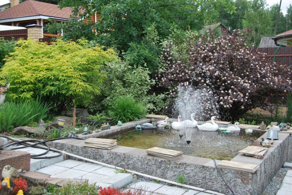 Пруд с фонтаном — изюминка и украшение сада