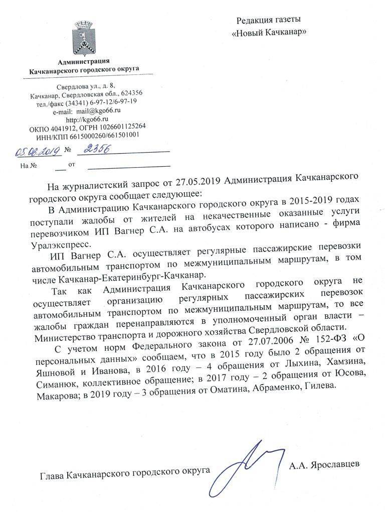 Мы предоставили в суд ответ из администрации Качканара о том, что от жителей в администрацию в 2015-2019 годах поступали жалобы на некачественно оказанные услуги перевозчиком Вагнером, на автобусах которого написано «Уралэкспресс». Также мы перечислили статьи, опубликованные в «Новом Качканаре», где говорится о фактах некачественных перевозок представителей фирмы «Уралэкспресс»: