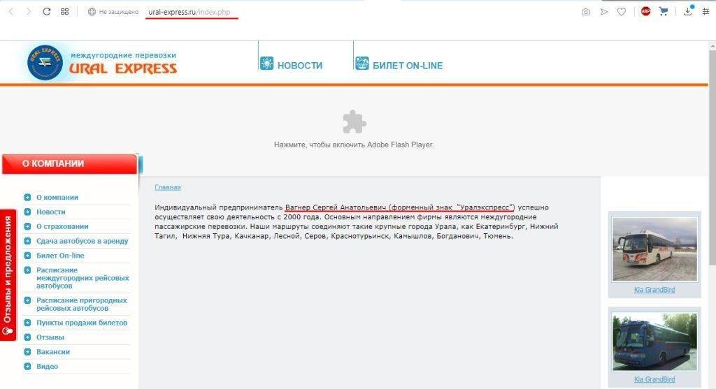 В деле имеются скриншоты с сайта «Уралэкспресс», где сказано, что ИП Вагнер Сергей Анатольевич успешно осуществляет деятельность с 2000 года под фирменным знаком «Уралэкспресс». Также скриншот с сайта «Уралэкспресс», где размещено расписание автобусов, рейсом на 5.00 и ехала в Екатеринбург Анна Абраменко.