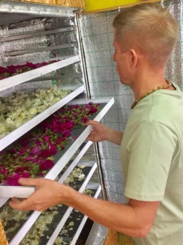 — У Саши инженерный склад ума, что он только ни придумывает для облегчения труда. Сам собрал большую сушилку, — говорит Катя. — Сейчас у него два сушильных шкафа. Он сам построил амбар во дворе. Там стоят сушилки, хранятся сборы.