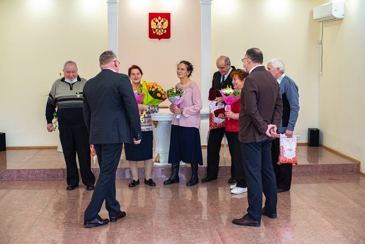 17 сентября в городском загсе вручили удостоверения и знаки отличия «Совет да любовь» трём парам из Качканра, прожившим в браке более полувека.